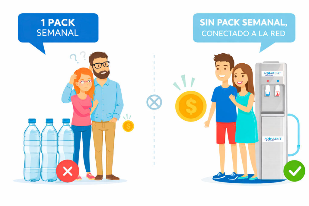 En AQUARENT elegís una forma más práctica y limpia de tomar agua: al no usar botellones, reducís el uso de plásticos y el transporte constante.